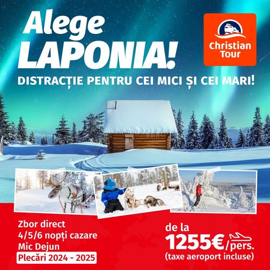 „Autocarele îi vor prelua pe musafiri, pe care îi vor duce spre cazare. În ziua programată pentru vizita acasă la Moș Crăciun, în pădurea laponă, spre celebrul său sat, vor face un popas la un magazin decorat ca-n filme, un setup ideal pentru primele poze instagramabile. Apoi, cu sania trasă de snowmobilul copiii însoțiți de părinți traversează un lac înghețat, la capătul căruia o întâlnesc pe Clopoțica (Tinker Bell), un prim personaj din povestea vacanței lor.”, a povestit Marius Berca, Manager Operațional Christian Tour.