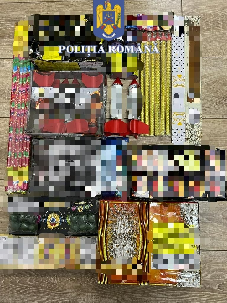 De asemenea, au fost ridicate în vederea confiscării 35 de kilograme de articole pirotehnice care erau oferite spre vânzare fără respectarea normelor legale.