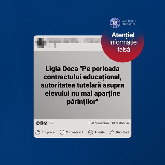 Atenție! Informație falsă! „Pe perioada contractului educațional, autoritatea tutelară asupra elevului nu mai aparține părintelui”