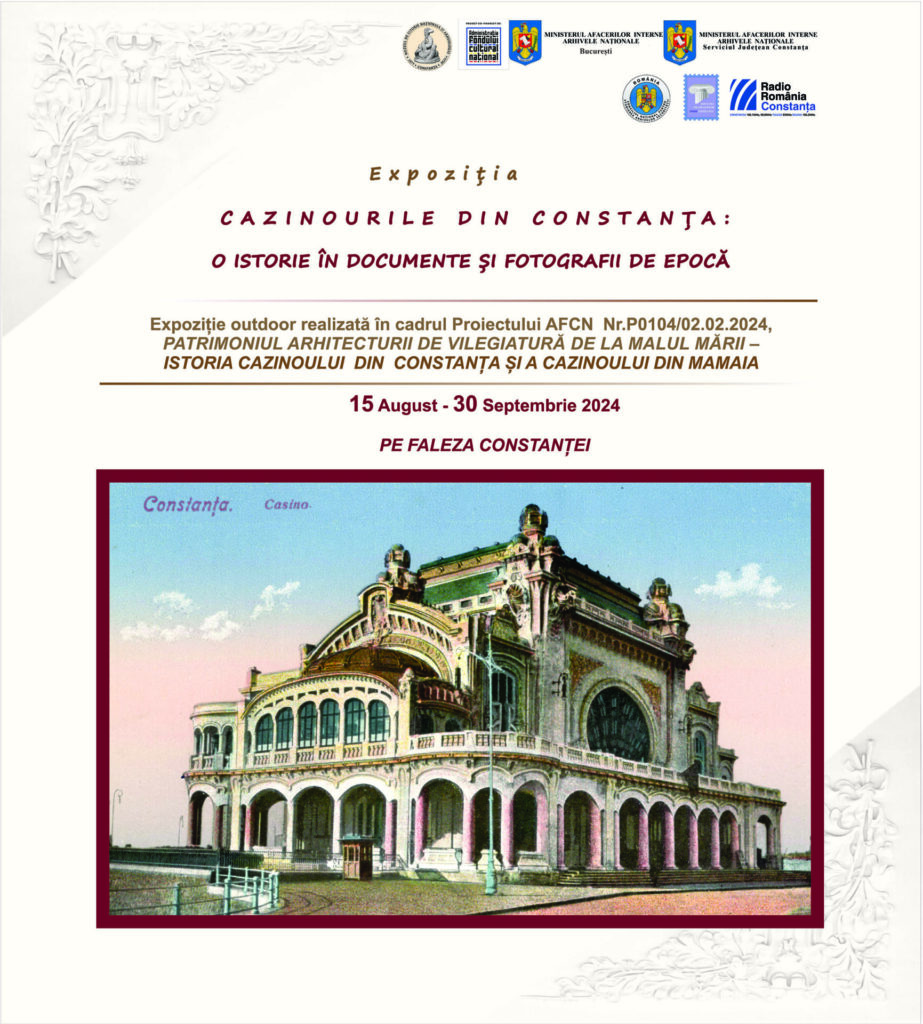 Astfel, în 14 august 2024, cu începere de la ora 16.00, publicul constănțean va putea admira Expoziția Cazinoul din Constanța – o istorie în documente, artefacte și fotografii de epocă, prezentată în foaierul Bibliotecii Județene „I.N.Roman” din Constanța.