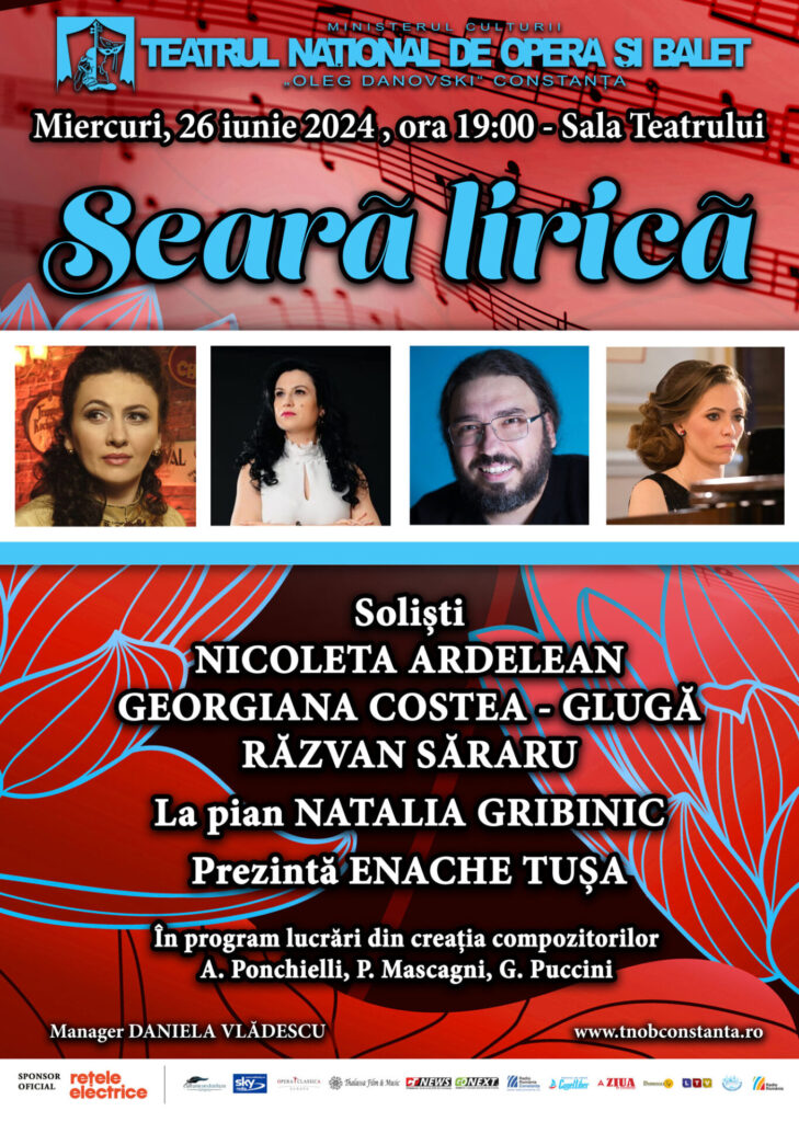 SEARĂ LIRICĂ – Miercuri, 26 iunie 2024, ora 19:00, Sala Teatrului