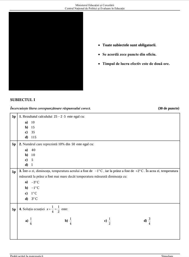 Iată subiectele de la matematică:
