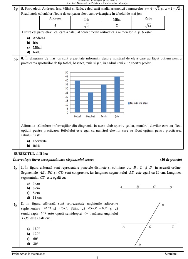 Simularea reprezintă un exercițiu important pentru elevi, oferindu-le ocazia de a se familiariza cu formatul examenului real și de a identifica aspectele pe care trebuie să le aprofundeze în următoarele luni de pregătire.