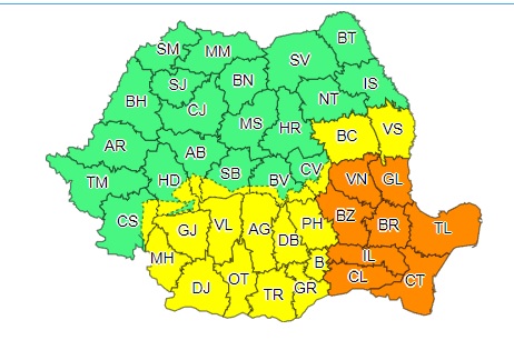 Județele Tulcea și Constanța vor intra sub atenționare de Cod Portocaliu