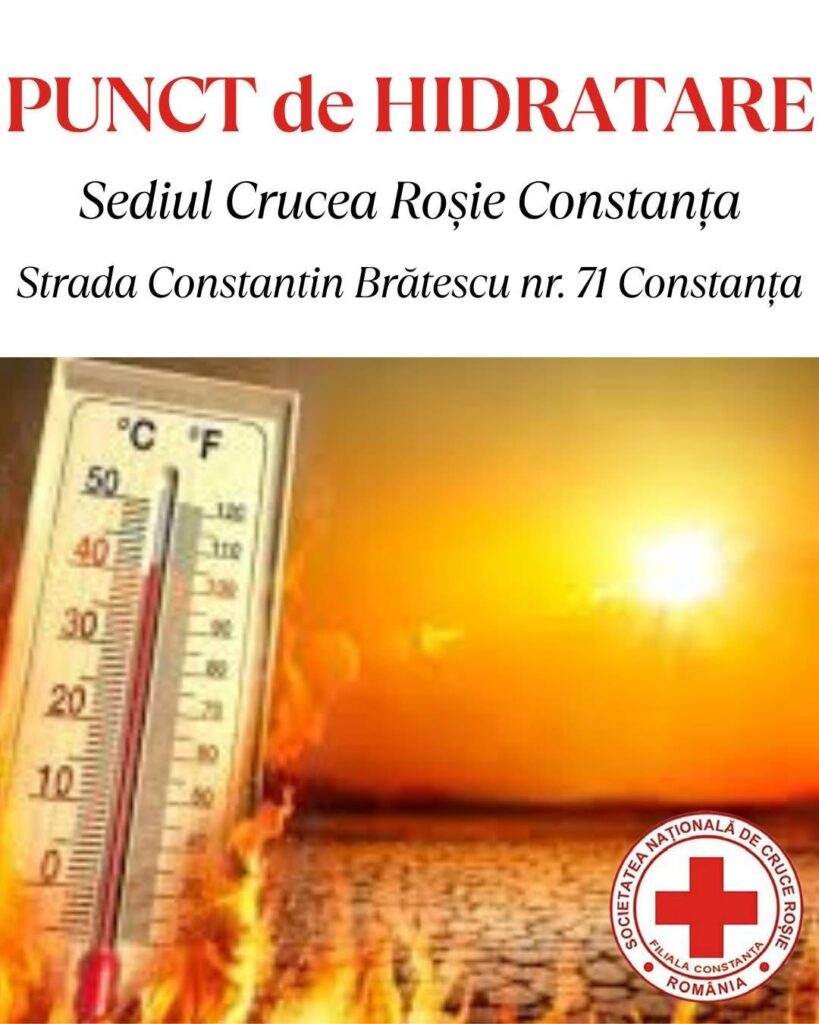 În contextul valului de căldură care afectează sud-estul țării și a avertizării meteorologice de cod galben de caniculă, Filiala de Cruce Roșie Constanța vine în sprijinul comunității prin organizarea unui punct de hidratare destinat tuturor celor care au nevoie de un moment de răcoare și reechilibrare în timpul zilei.