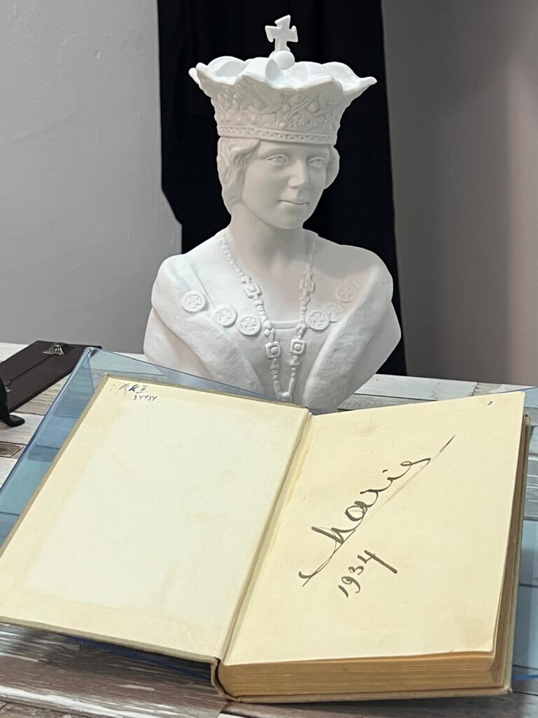 Această semnătură, care este un „ex libris” (în limba latină înseamnă „din cărțile mele”), reprezintă un semn de proprietate. „Ex libris-ul” mai poate fi sub formă de timbru sec sau etichetă și arată că volumul a făcut parte din biblioteca unei persoane. Cum a ajuns să fie vândut la un anticariat un astfel de volum? Poate că, în anii tulburi de după 1940, biblioteca reginei de la reședința din Balcic a fost devalizată și o parte dintre cărți a ajuns să fie vândută. Sau, poate că volumul a fost dăruit unei cunoștințe și aceasta nu l-a prețuit și l-a vândut. Oricum ar fi fost, ne bucurăm că face parte din colecțiile speciale ale instituției și vă așteptăm să-l vedeți, alături de alte volume cu semnături celebre.