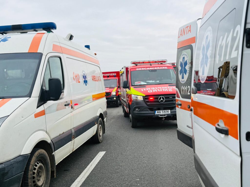 O tânără a fost preluată de elicopter și transportată la spital. Alte șapte persoane, conștiente, au ajuns la spital cu echipajele SMURD și SAJ.