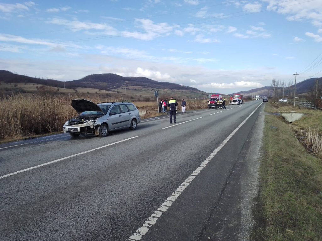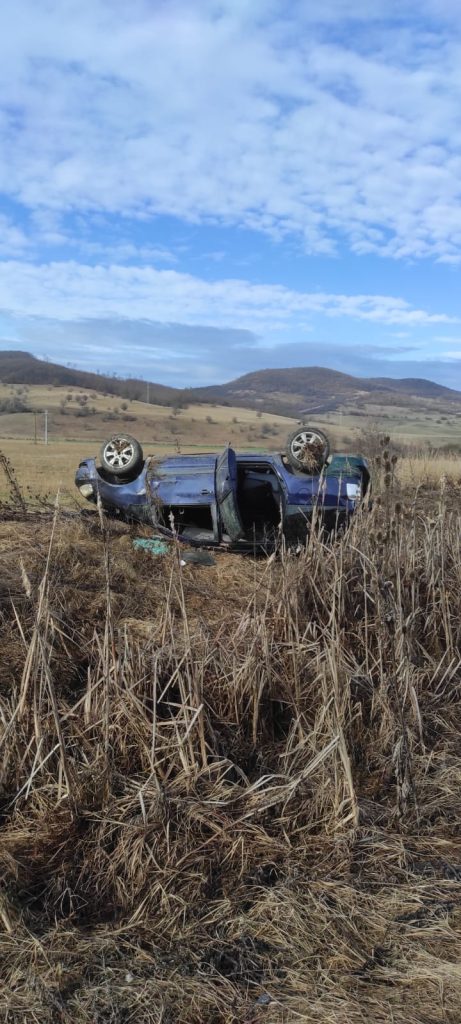 (Foto) Bistrița-Năsăud: Accident rutier între două autoturisme. Unul s-a răsturnat. Într-o mașină se afla și un copil