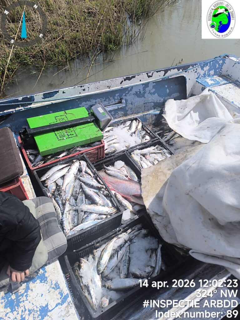 „În urma controlului, pe brațul Sf. Gheorghe, la km 11 a fost aplicată o amendă în valoare de 4.000 lei, în baza Legii 176/2024 privind pescuitul și protecția resursei acvatice vii și au fost ridicate în vederea confiscării 90 kg de scrumbie, pentru încălcarea condițiilor de autorizare. Peștele a fost predat la o societate de profil din Sf. Gheorghe.