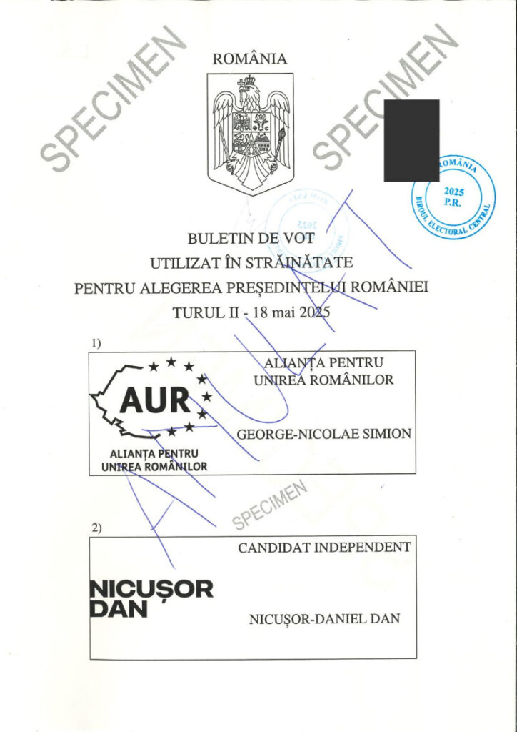 Regăsiți în link-urile 1şi 2 specimenele buletinelor de vot care vor fi utilizate în secțiile de votare din țară și din străinătate la al doilea tur de scrutin al alegerile pentru Președintele României din anul 2025.
