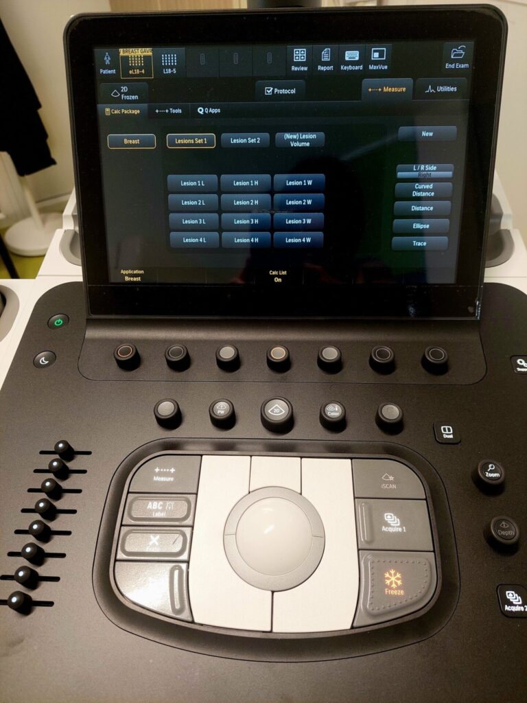 sistem SLS, capabil să realizeze fuziunea imaginilor ecografice cu investigațiile RMN de sân, printr-un braț cu generator electromagnetic;
