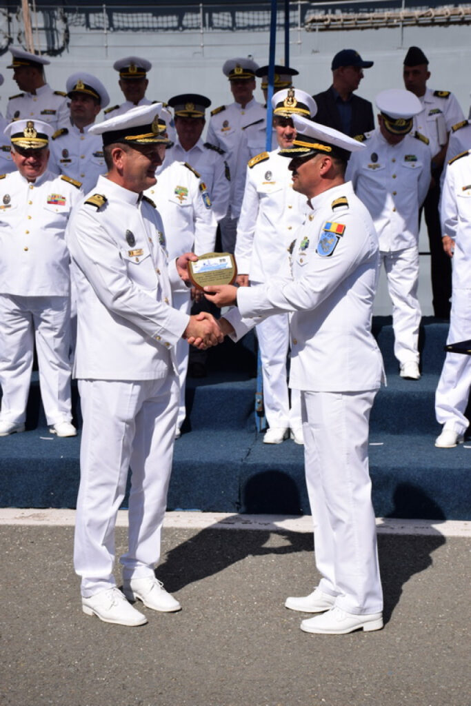 Luni, 9 septembrie, a avut loc ceremonialul militar desfășurat cu prilejul sărbătoririi a 20 de ani de la intrarea fregatei „Regele Ferdinand” în serviciul Forțelor Navale Române, în prezența șefului Statului Major al Forțelor Navale, viceamiral Mihai Panait.