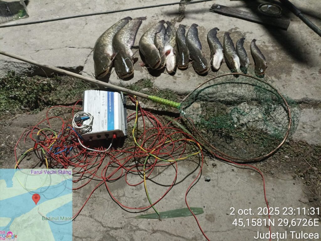 În dreptul Mm 4, pe malul drept, au fost identificate două persoane care desfășurau activități de pescuit ilegal. În urma verificărilor efectuate la fața locului, în stuf, a fost descoperit un aparat electric utilizat pentru pescuit (un dispozitiv interzis prin lege, cu efecte devastatoare asupra ecosistemului acvatic).