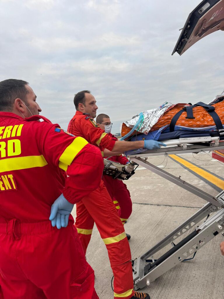UPDATE: Pacientul afectat de explozia produsă pe Calea Rahovei, care a fost transportat cu o aeronava SMURD a IGAv, a ajuns în siguranță la spitalul din Austria, unde urmează să beneficieze de tratament de specialitate.