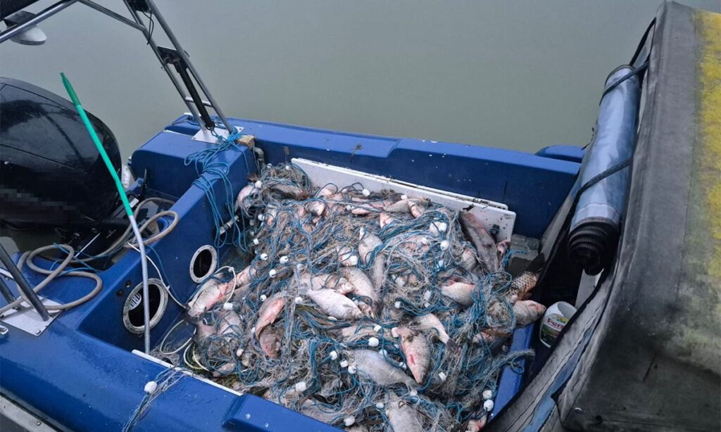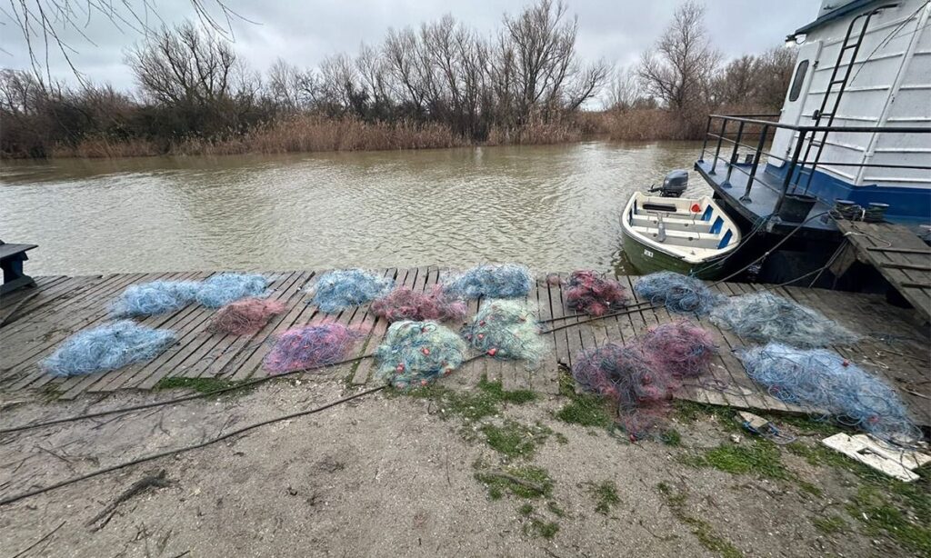 La data de 12.02.2026, polițiștii de frontieră din cadrul Serviciului Teritorial al Poliției de Frontieră Tulcea, în cooperare cu inspectori ai Administrației Rezervației Biosferei Delta Dunării, au identificat în zona lacului Leahova plase de pescuit din fir textil și multifilament, cu o lungime totală de peste 1.000 de metri, în care se aflau 60 kg de pește.