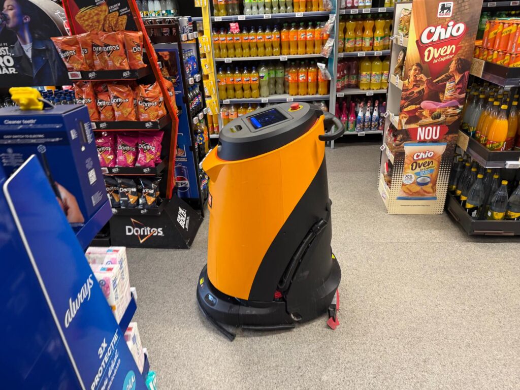 Scenele filmate arată clar direcția în care se îndreaptă unele lanțuri comerciale din România: automatizarea proceselor, inclusiv în ceea ce privește întreținerea curățeniei în magazine.