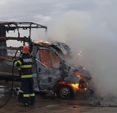 Forțele de intervenție au localizat și lichidat incendiul, în aproximativ cinci minute, însă flăcările, care în momentul sosirii pompierilor se manifestau deosebit de violent la aproape întregul autovehicul, au afectat circa 80% din autoutilitară.