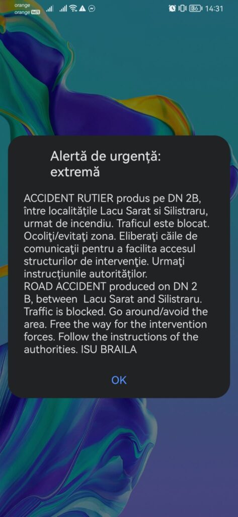 „Circulația este oprită temporar pe DN 2B Brăila-Buzău, între localitățile Silistraru și Lacul-Sărat, județul Brăila, în urma producerii unui accident între un autoturism și o autocisternă, care au luat foc. Traficul este deviat pe DJ 255A pe sensul dinspre Buzău și pe DJ 212 pe sensul dinspre Brăila, pentru a permite intervenția la locul accidentului.”, transmite Centrul INFOTRAFIC din Inspectoratul General al Poliției Române.
