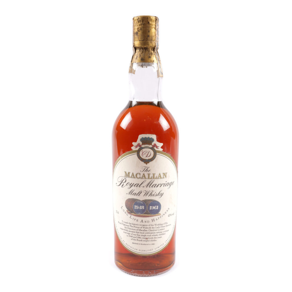 Aceast whisky a fost creat din două recolte, din 1948 și 1961, reprezentând anii de naștere ai mirilor din Familia Regală Britanică. Fondat în 1824 de Alexander Reid, un fermier de orz, care a fost și profesor, Macallan a fost una dintre primele distilerii din Scoția care a primit licență de legală funcționare. Numele provine din cuvântul gaelic „magh”, care înseamnă „pământ fertil”, iar terminația adăugată, „llan”, aduce aminte de un călugăr pe nume St. Fillan, care avea o legătură strânsă cu biserica pe care se află terenurile distileriei.