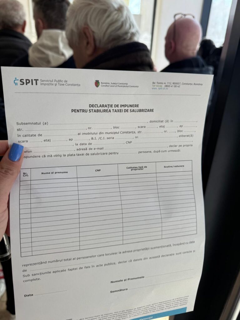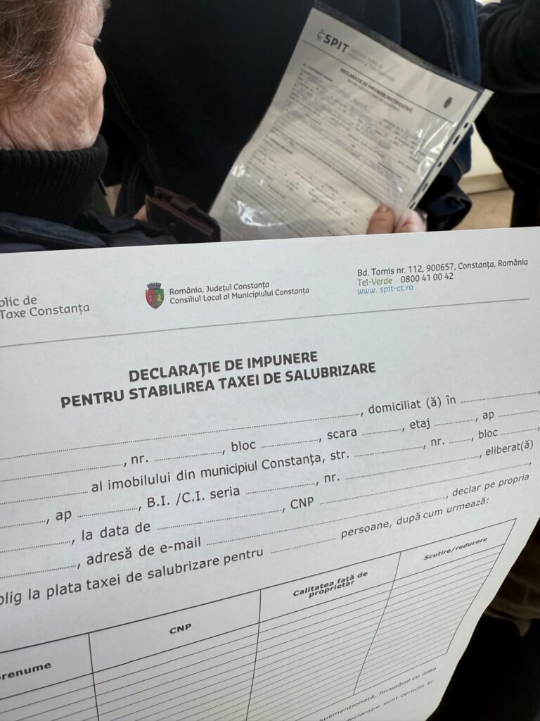 Cei care vor să evite cozile au şi varianta plăţii online. Formularul tipizat și documentele doveditoare necesare impunerii la plata/reducerii/scutirii de la plata taxei se regăsesc online, accesând site-ul instituției www.spit-ct.ro, secțiunea “Documente declarare persoane fizice”/”Taxa de salubrizare” și pot fi depuse: