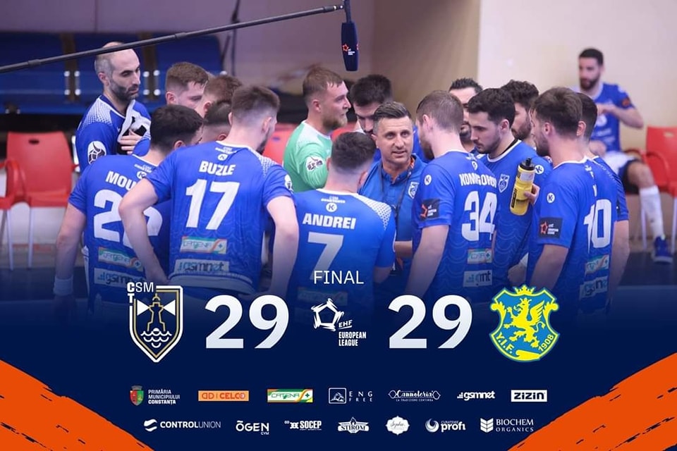 CSM Constanța și Ystads IF au încheiat la egalitate, 29-29, în prima etapă din Grupa D EHF European League, după un meci “nebun” la Sala Sporturilor, cu un final pe muchie de cuțit, în care CSM Constanța a avut șansa de a câștiga! Când nu e Dani Vasile, e Vlad Rusu! Paradele sale au ținut Constanța în viață în repriza secundă și handbaliștii de la CSM Constanța, susținuți de un public senzațional, au întors rezultatul nefavorabil de la pauză (11-13), cu un efort remarcabil de echipă. Au condus cu două goluri pe final, dar au fost egalați și au ratat lovitura de grație la ultimul atac.
