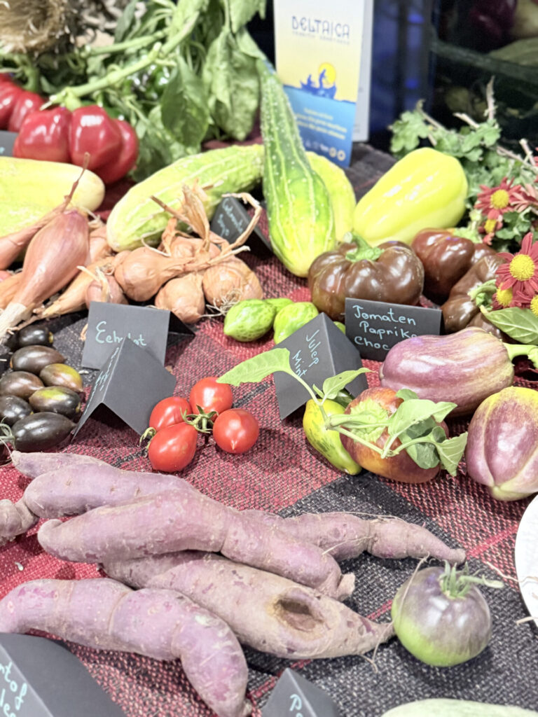 Participanții au avut ocazia să descopere o parte din produsele cultivate pe moșie, la standul amenajat special: legume și plante aromatice, precum usturoiul elefant, ardeiul Baghera, cartoful mov sau roșii de colecție, toate crescute cu grijă și fără chimicale.