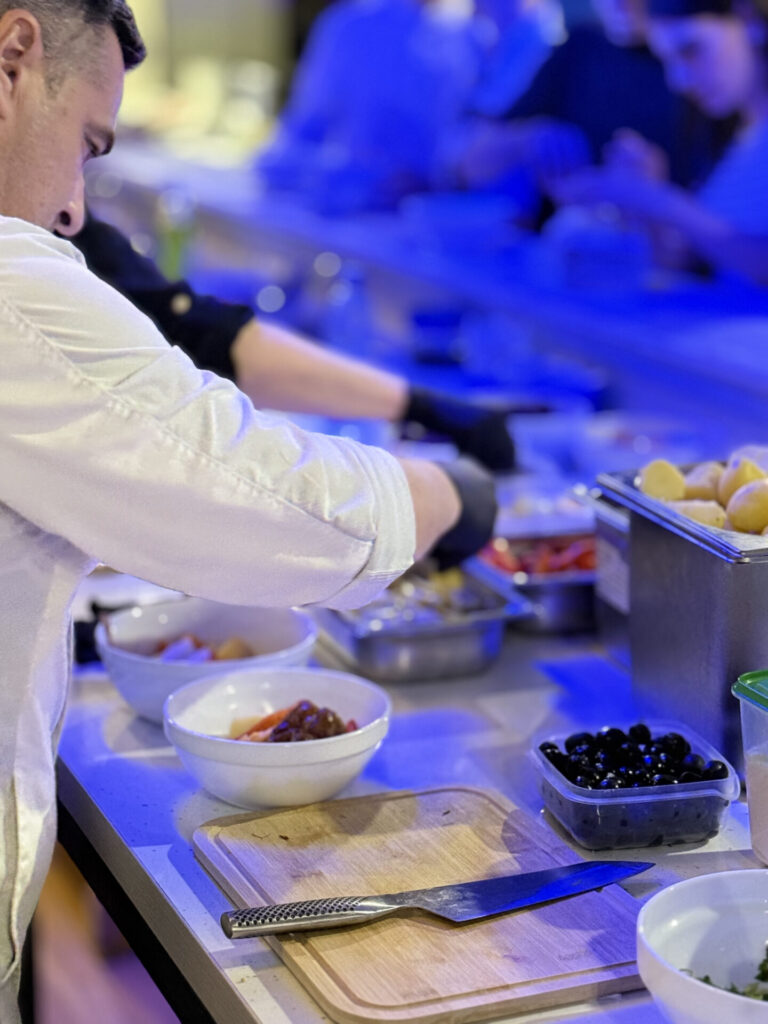 Sub îndrumarea Chef-ului Octavian Băloi și a Sous Chef-ului Laura Titoiu de la Rozmarine, tinerii au pregătit împreună o salată dobrogeană folosind ingrediente locale oferite de partenerii evenimentului.