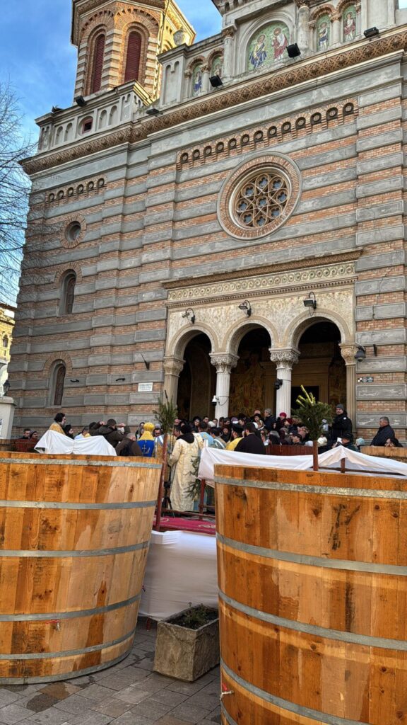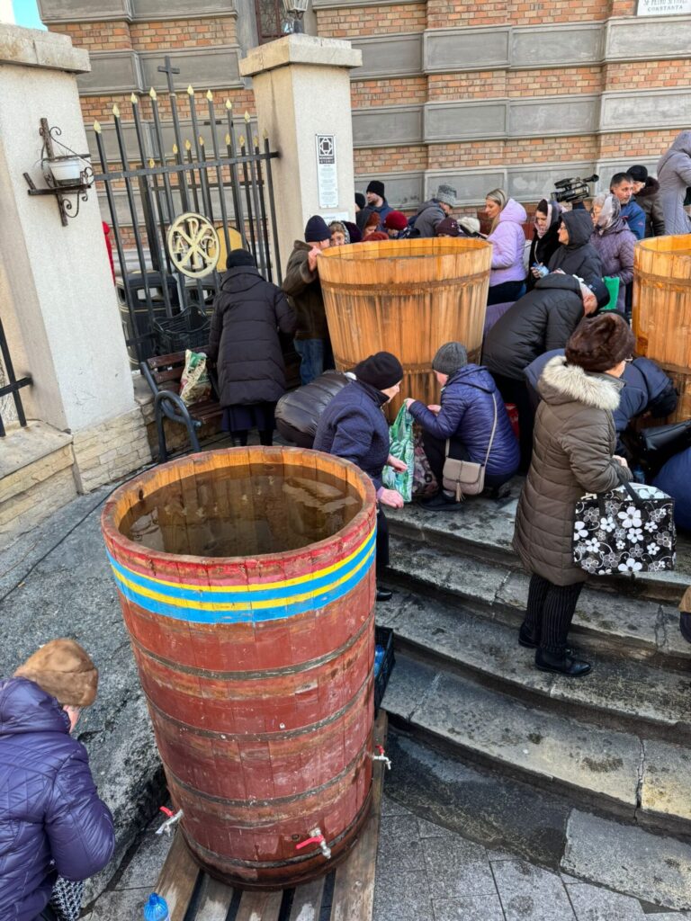 Sute de credincioși au venit duminică dimineață la Catedrala Arhiepiscopală „Sfinții Apostoli Petru și Pavel” din Constanța, acolo unde a fost oficiată slujba de Sfințire Mare a Apei, identică cu cea oficiată în ziua de Bobotează. Aghiasma Mare a fost îmbuteliată în PET-uri ce vor fi oferite credincioșilor constănțeni de Bobotează.
