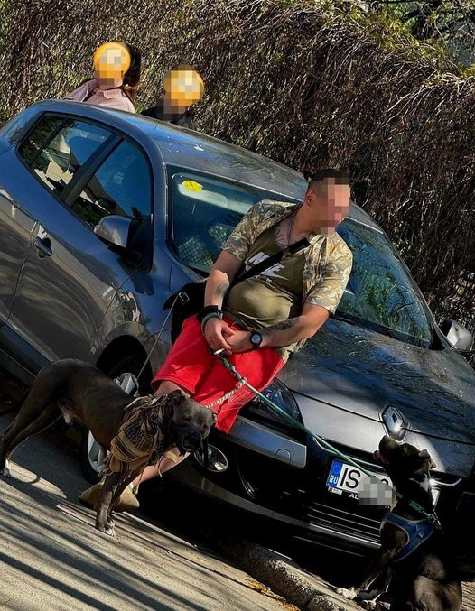 Un echipaj de jandarmi aflat în patrulare în zona unui liceu din Iași a observat într-o parcare din apropiere un bărbat care avea în lesă doi câini periculoși, unul dintre ei neavând botniță.