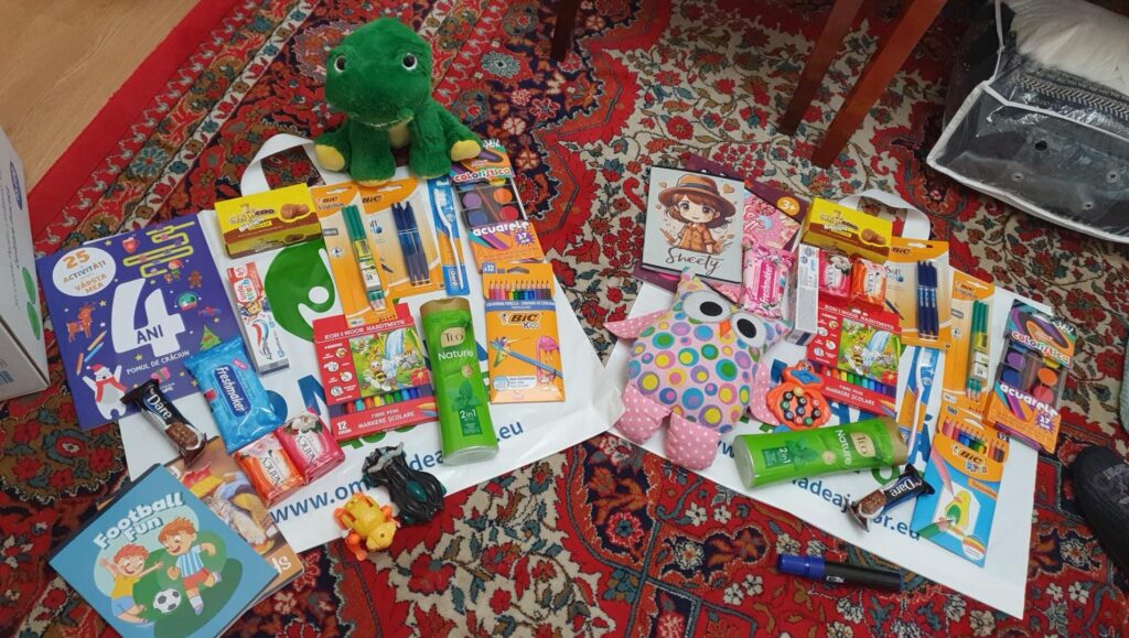Cu ajutorul comunității și al ONG-ului „O mână de ajutor”, voluntarii au organizat trei sesiuni de cumpărături și au oferit cadouri, pachete personalizate cu rechizite, cărți, produse de igienă și jucării. Totodată, au fost distribuite alimente neperisabile și haine călduroase către familiile acestora.