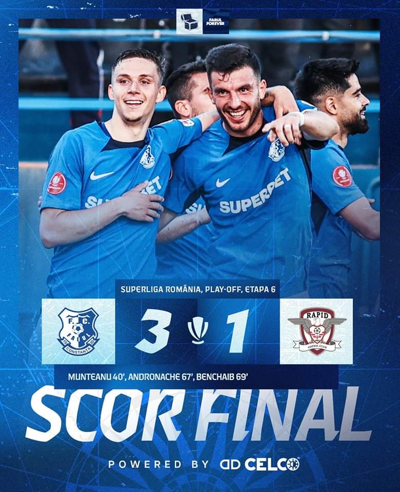 Farul s-a „dezlănţuit” în repriza a doua. În doar două minute a făcut „knock-out” apărarea Rapidului. În minutul 67, Louis Munteanu i-a pasat în careu lui Luca Andronache, iar atacantul l-a executat simplu pe Drăghia. După nici 2 minute, Amine Benchaib a intrat în careu, a șutat la colțul lung și l-a învins pe portarul oaspeţilor. S-a terminat 3-1 pentru Farul, care este acum mai aproape de atingerea obiectivului: participarea în Cupele Europene.