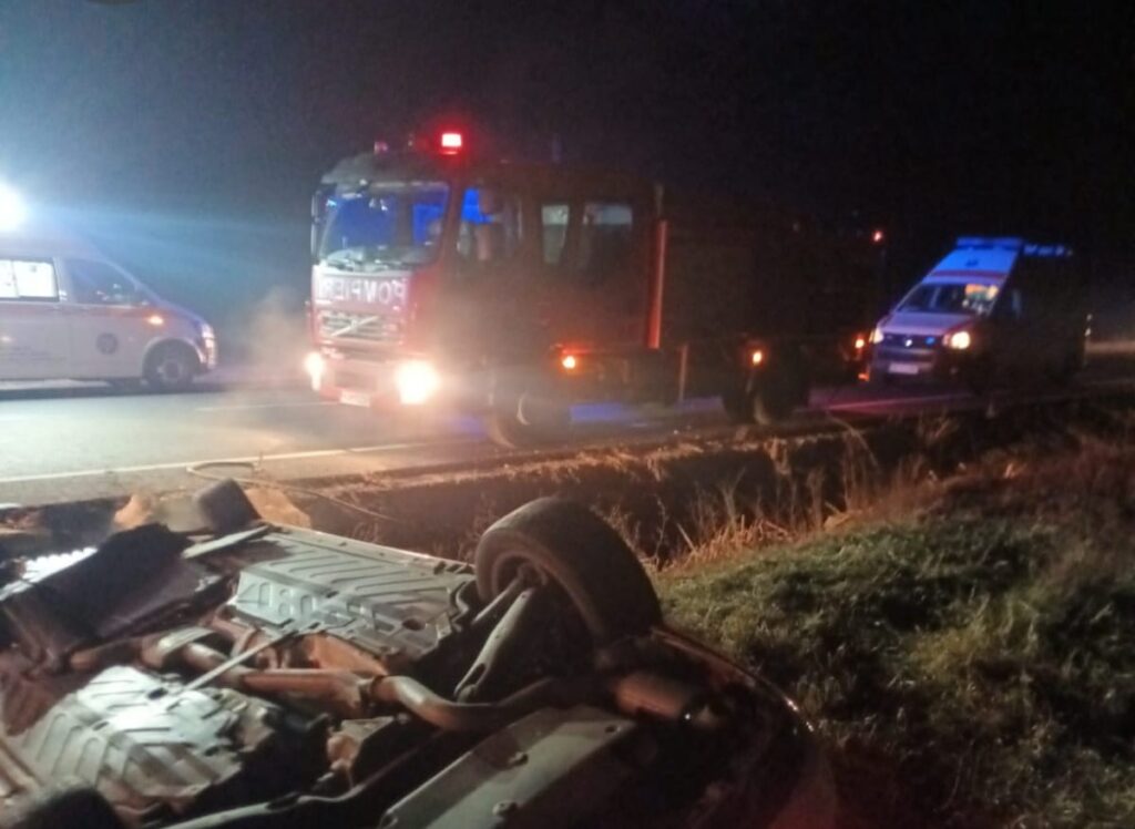 Noaptea trecută, salvatorii mehedințeni au intervenit la un accident rutier produs pe DN6, pe raza localității Prunișor, unde un autoturism s-a răsturnat în afara părții carosabile.