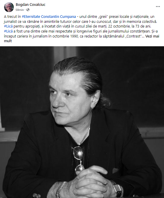 „Cu multă tristețe, ne luăm rămas bun de la cel care a fost nu doar un prieten, ci și un adevărat susținător al comunității noastre. Cunoscut jurnalist și scriitor, Constantin Cumpănă a fost, de asemenea, un revoluționar dedicat, fiind alături de noi în toate momentele cruciale. Rolul său în sprijinirea revoluționarilor din Constanța și în organizarea protestelor și deplasărilor noastre la București a fost uriaș. Era un artizan al cuvântului, punând pe hârtie toate comunicatele noastre cu un har deosebit.