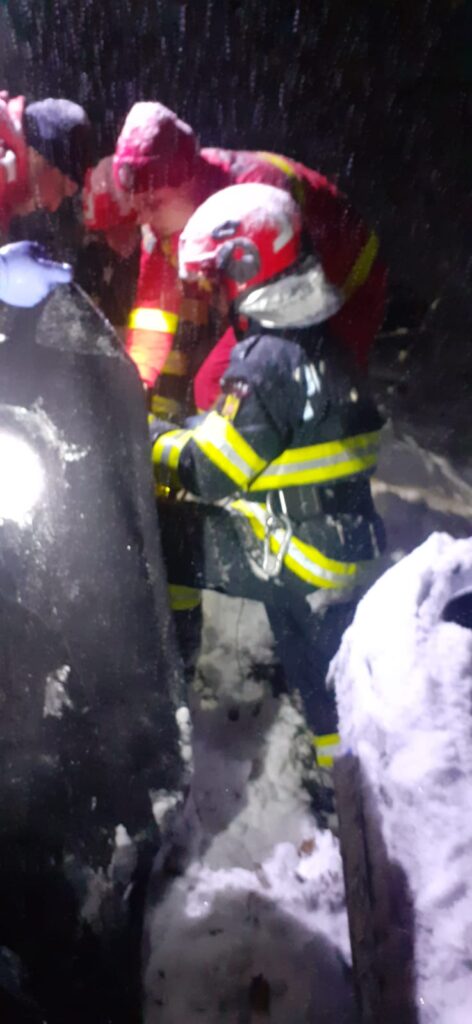 Ajunși la locul accidentului, pompierii au intervenit pentru scoaterea conducătorului auto din interiorul autoturismului, cu ajutorul tărgii lopată.