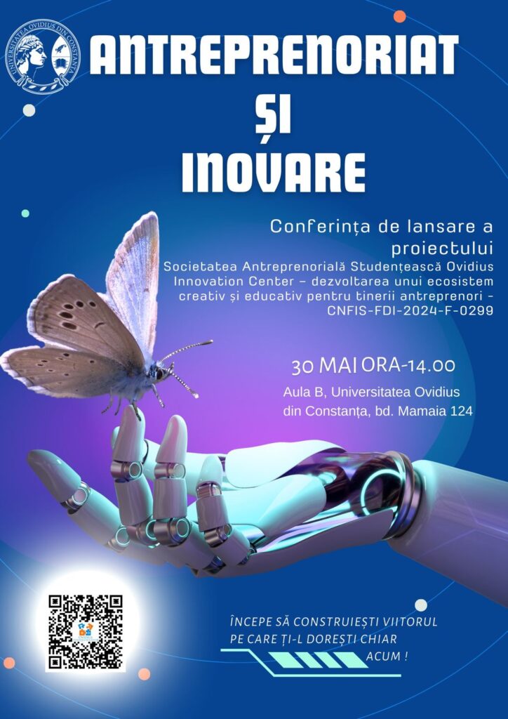 Societatea Antreprenorială Studențească – Ovidius Innovation Center (OICSAS) a Universității „Ovidius” din Constanța (UOC) organizează joi, 30 mai 2024, la ora 14:00, conferința de lansare a proiectului CNFIS-FDI-2024-F-0299 – „Societatea Antreprenorială Studențească Ovidius Innovation Center – dezvoltarea unui ecosistem creativ și educativ pentru tinerii antreprenori”.