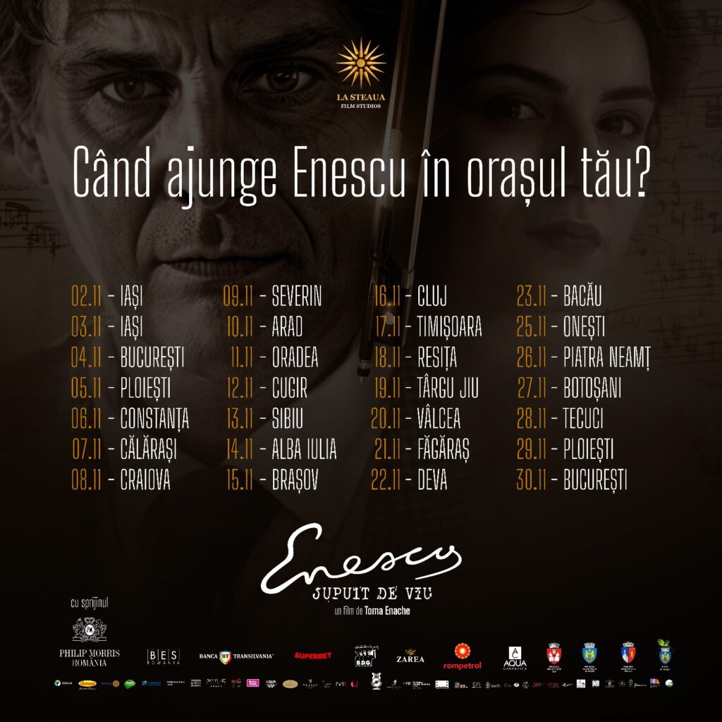 Filmul „Enescu, jupuit de viu” va fi prezentat exclusiv în cadrul premierelor de gală, în prezența regizorului și a unor membri ai echipei, oferind publicului o experiență cinematografică unică. Biletele sunt disponibile pe iabilet.ro și ticketstore.ro.