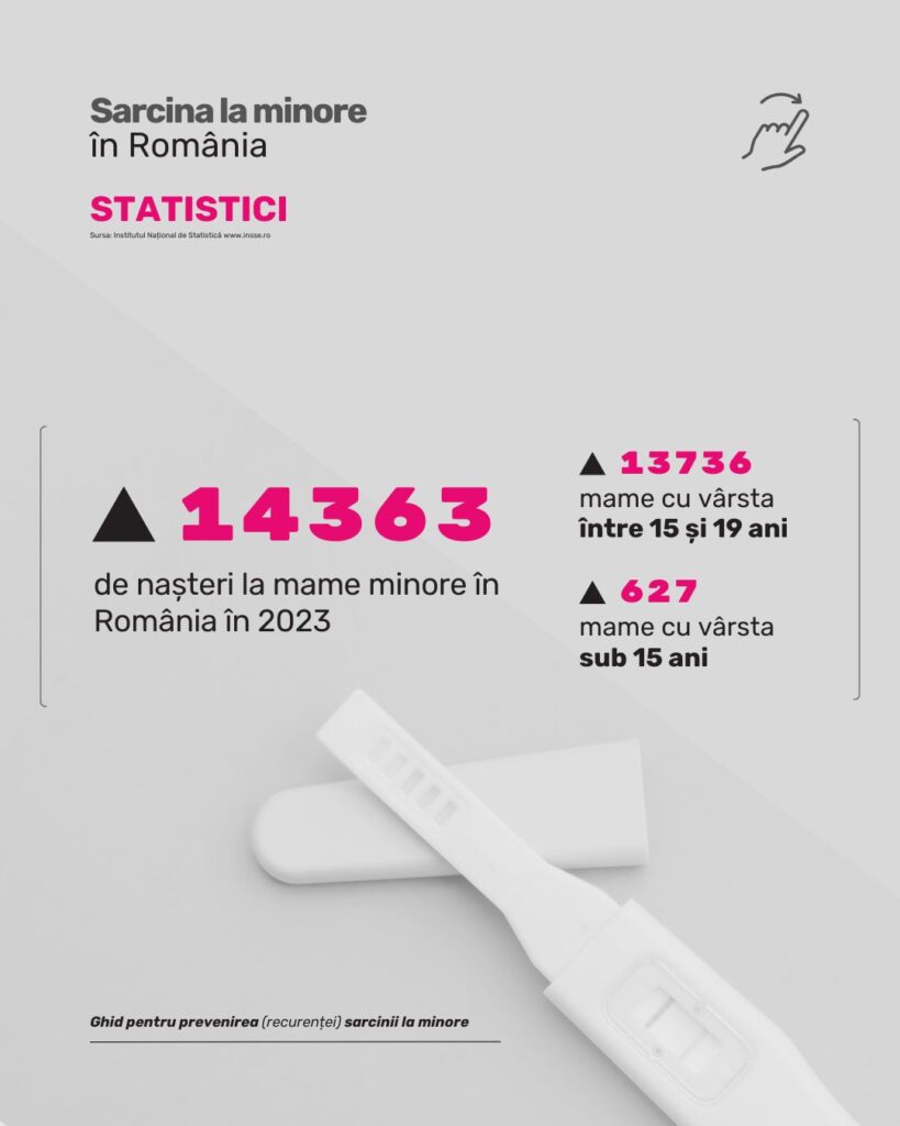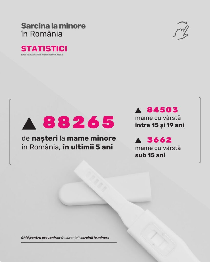 Conform datelor prezentate în document, în România, în ultimii 5 ani, au avut loc peste 88.000 de nașteri la mame minore, dintre care peste 84.000 de nașteri la mame cu vârsta între 15 și 19 ani și peste 3.600 la mame cu vârsta sub 15 ani.
