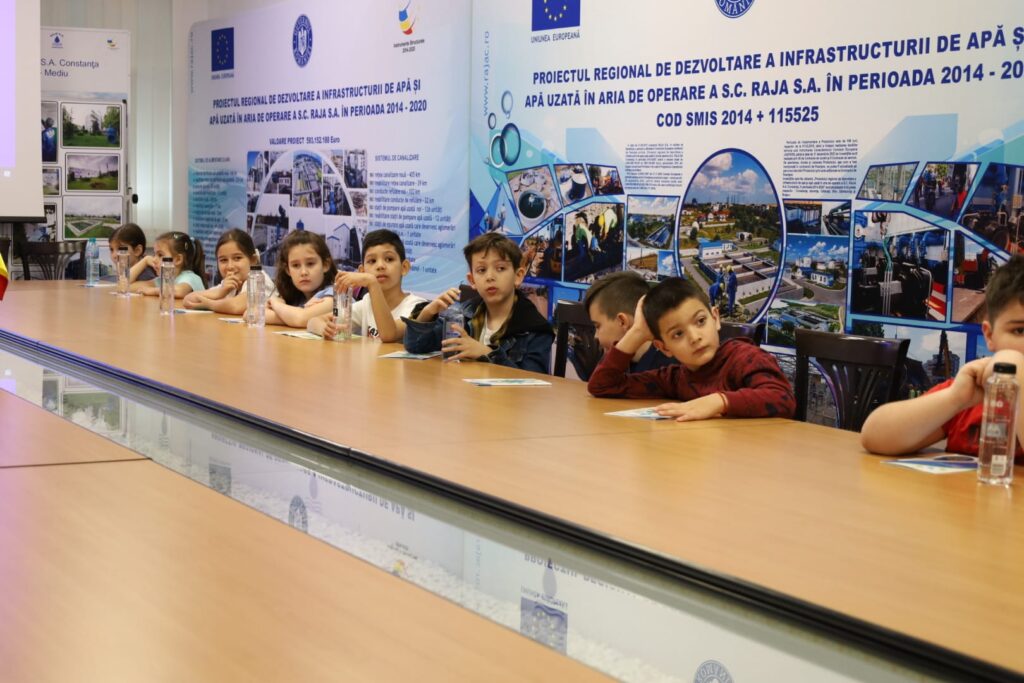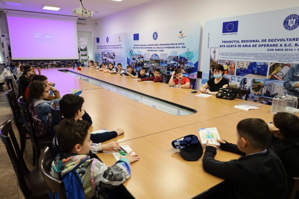 Evenimentul a debutat cu partea teoretică, în care copiilor le-a fost prezentat un filmuleț captivant care a evidențiat cele mai importante obiective ale companiei, în calitate de lider regional pe piața serviciilor de alimentare cu apă. Au aflat astfel că RAJA depune eforturi constante pentru a furniza comunității apă potabilă de calitate și servicii de canalizare eficiente într-o arie extinsă de operare.