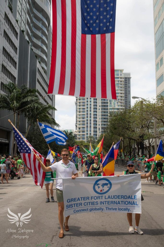 O parte importantă a paradei de Sf. Patrick a fost organizată de Greater Fort Lauderdale Sister Cities International (GFLSCI), asociație care gestionează colaborările internaționale ale orașului Fort Lauderdale și a fost implicată și în stabilirea relațiilor de cooperare dintre orașele noastre.