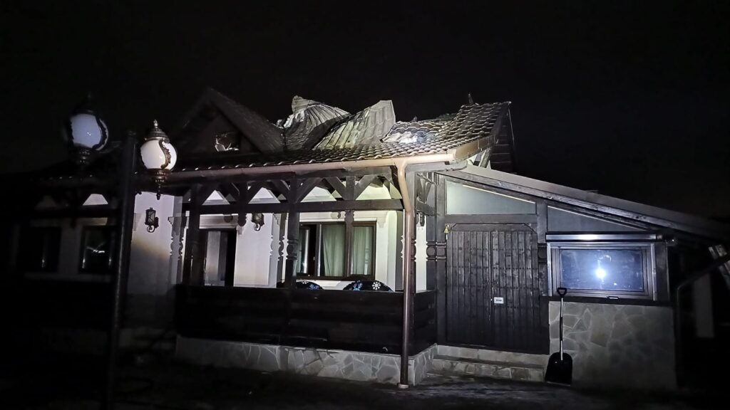 Au ars acoperișul casei de locuit pe o suprafață de aproximativ 190 de metri pătrați, două anexe gospodărești, pe aproximativ 50 de metri pătrați, un foișor pe 40 de metri pătrați, 20 de anvelope și o canapea. S-au degradat tencuiala și zugrăveala din locuință, precum și alte bunuri materiale.