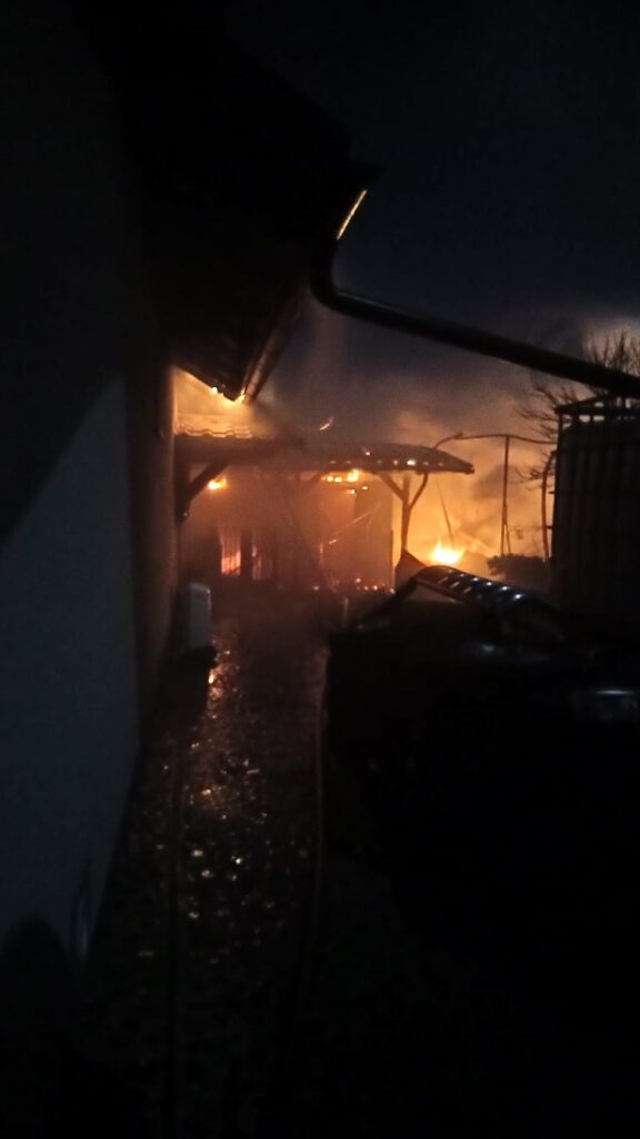 La sosirea echipajelor, ardeau generalizat acoperișul casei de locuit și anexele gospodărești, cu pericol de propagare la întreaga locuință, dar și la vecinătăți.