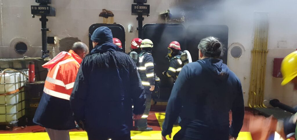 La momentul sosirii echipajelor de intervenție, incendiul se manifesta într-un mod extins, generând cantități semnificative de fum într-o încăpere a navei. Pompierii au intervenit de urgență, colaborând cu lucrători ai Poliției de Frontieră și un remorcher al Administrației Fluviale a Dunării de Jos pentru a stinge flăcările.