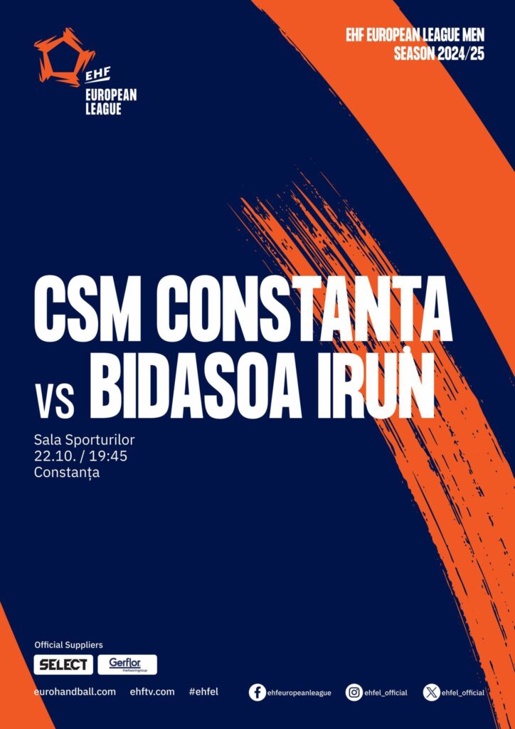 Marți, 22 octombrie, de la ora 19:45, CSM Constanța întâlnește Bidasoa Irun într-un meci care se anunță incendiar. CSM Constanța (1 punct) are nevoie de un rezultat pozitiv în meciul cu Bidasoa (3p), care este urmată în clasamentul grupei de Chrobry Glogow (3p). Ystads (1p) este pe ultima poziție, fiind învinsă, în Suedia, de Bidasoa cu 29-23. Misiunea echipei de la malul mării se anunță dificilă. Nistor, Vasile & comp mizează pe cât mai mulți fani în tribune.