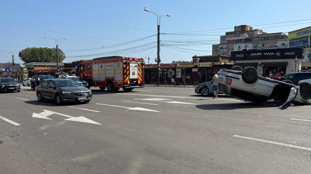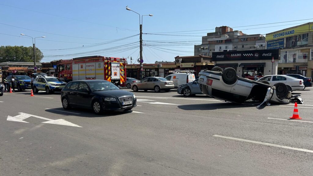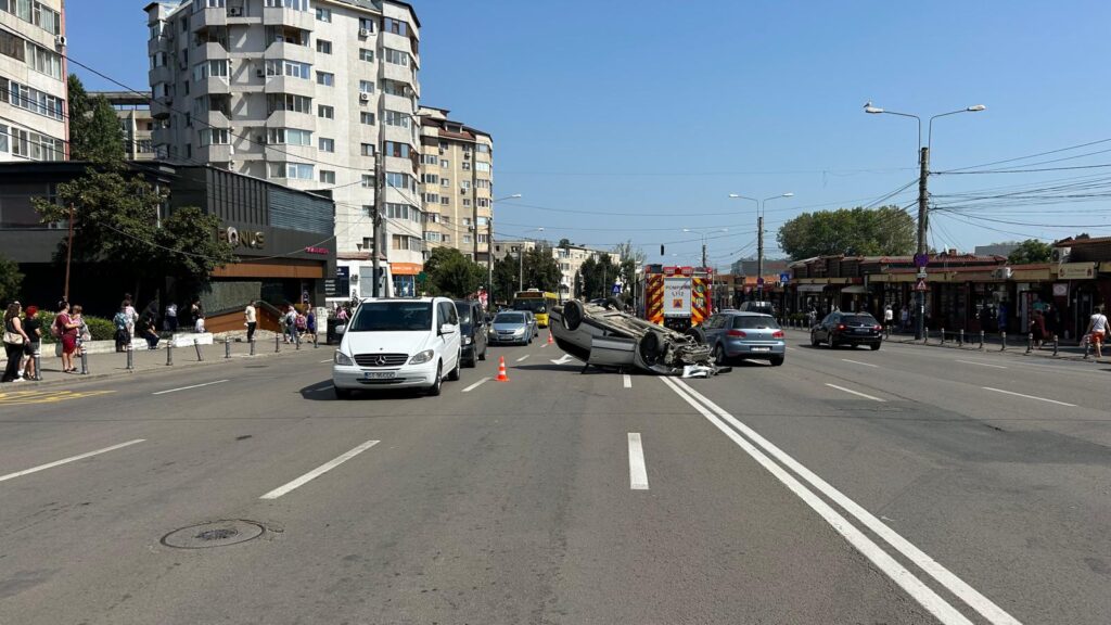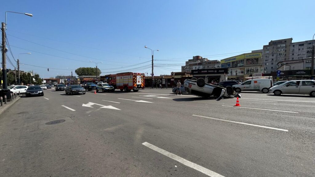 Un accident rutier a avut loc astăzi în jurul orei 11:00, la intersecția străzii Soveja cu bulevardul Tomis. Un autoturism s-a răsturnat, iar o persoană a fost rănită. La fața locului au ajuns mai multe echipaje ale ISU Constanța, printre care și echipa de descarcerare.