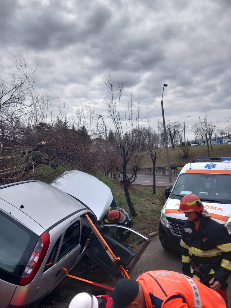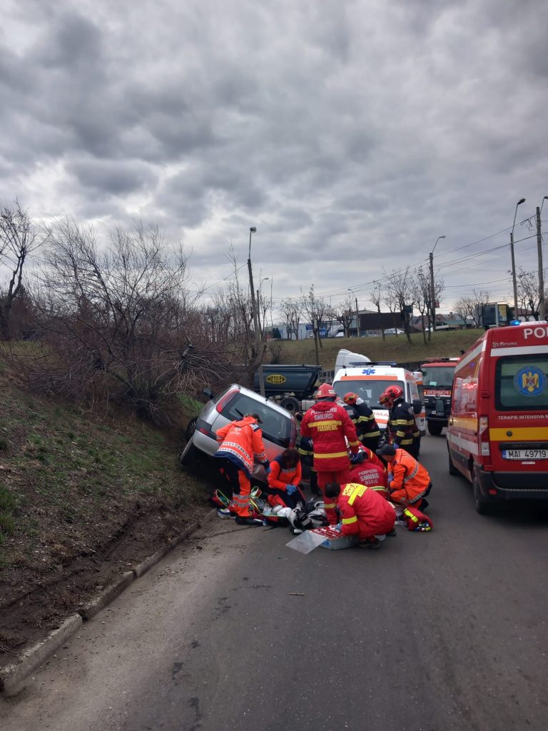 Pompierii au fost solicitați să intervină în municipiul Piatra-Neamț (pe breteaua de legătură dintre Bulevardul General Dăscălescu și strada Dimitrie Leonida) la un accident rutier. Un autoturism în care se aflau trei persoane a părăsit partea carosabilă.
