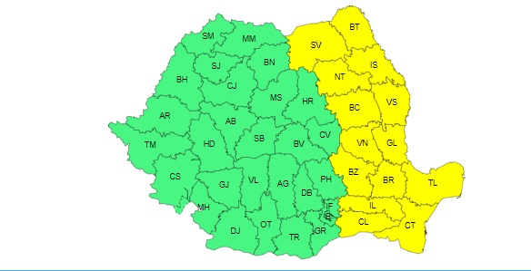 Atenționarea de Cod Galben emisă de meteorologi este valabilă de astăzi, de la ora 18:00, până pe 09 ianuarie, ora 10:00.