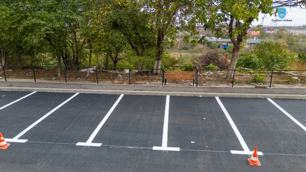 Echipele Confort Urban au executat lucrări de stabilizare a terenurilor, au fost montate bordurile care delimitează locurile de parcare, zona carosabilă a fost recondiționată prin turnarea a două straturi de asfalt (binder și uzură), iar la final au fost aplicate marcajele rutiere. S-au construit noi trotuare iar aleile de acces în scările blocurilor din proximitatea parcării au fost reabilitate.