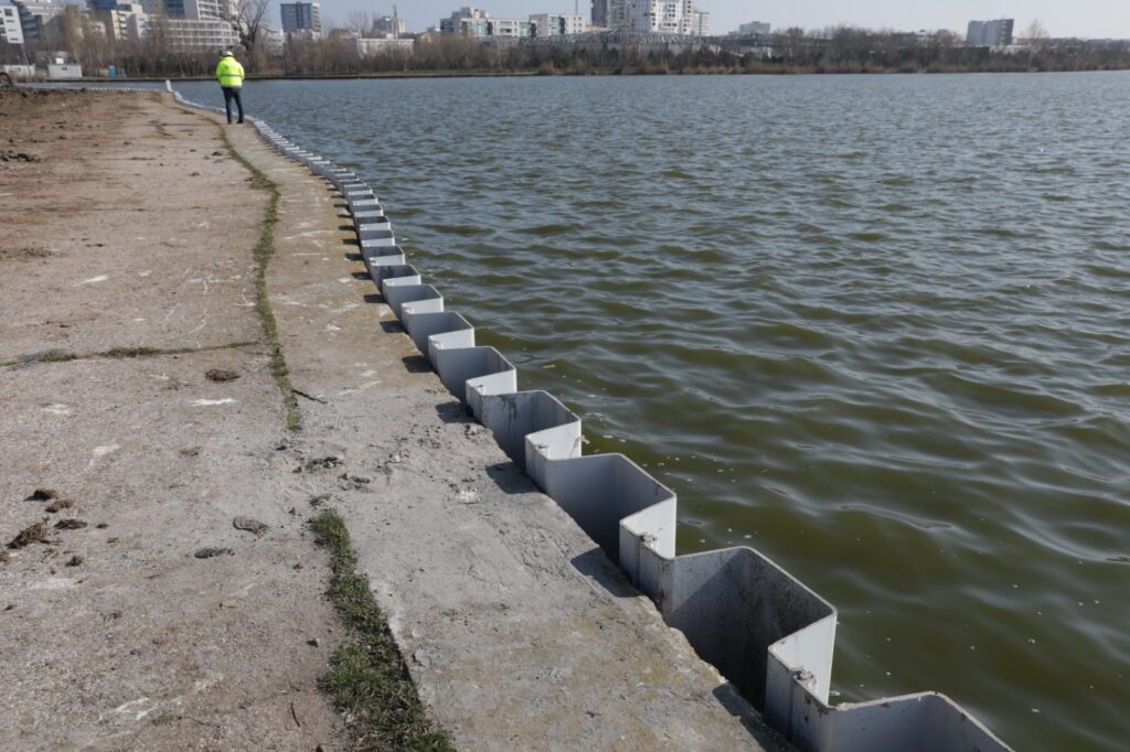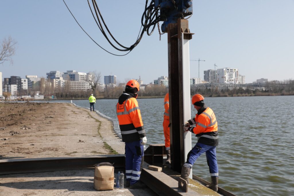 Au demarat lucrările de reabilitare și consolidare a malurilor lacului Tăbăcărie. În prima etapă a proiectului se montează un sistem structural de protecție a malului, realizat din profile din material compozit în zona de nord a lacului.