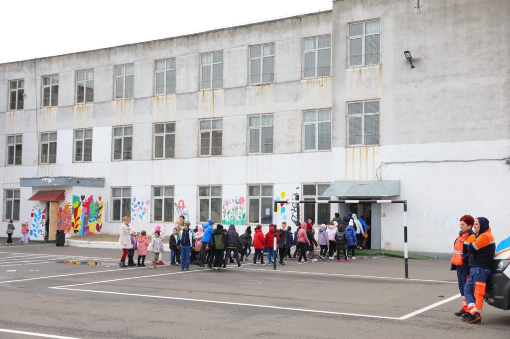 „Alarma la dezastre” constând în 5 sunete a 16 secunde fiecare, cu pauză de 10 secunde între ele, s-a dat la ora 10:20, atunci când elevii erau la orele de curs.