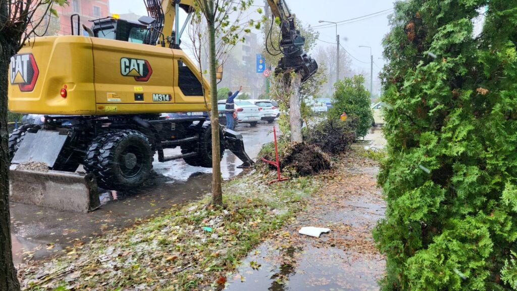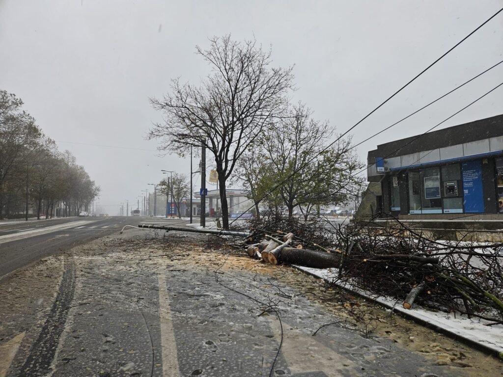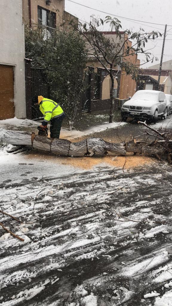 UPDATE 12:00: Mai multe echipe de țapinari ale societăților de întreținere a copacilor și ale ISU lucrează la foc continuu pentru de tăierea și degajarea arborilor căzuți pe carosabil sau pe mașini.